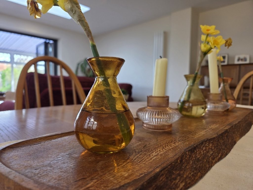 Generous living room with space for a dining area. Side-aspect windows, wood-effect flooring and bi-folding doors leading to the conservatory.